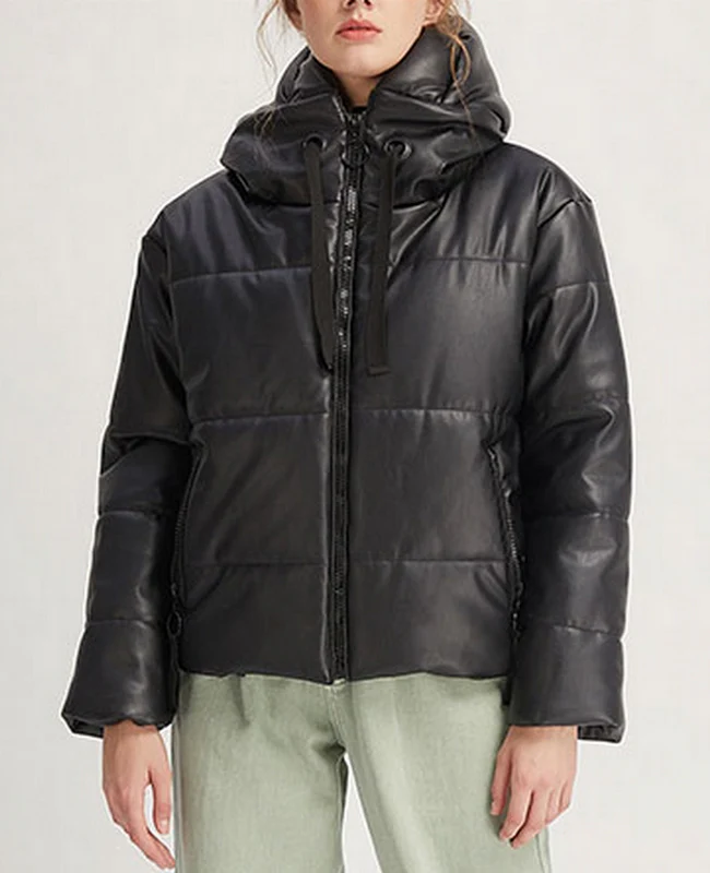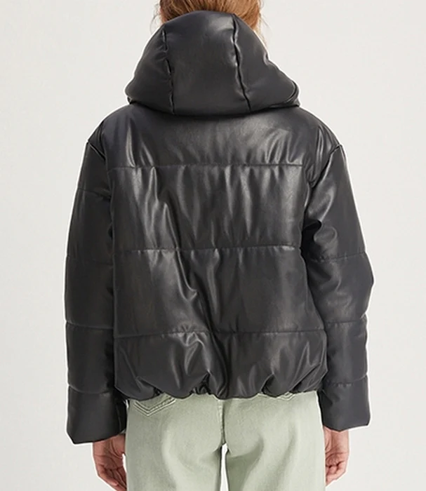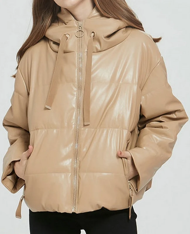 El modelo Clyra es un abrigo plumas de polipiel. Diseño con cremallera, bolsillos y capucha