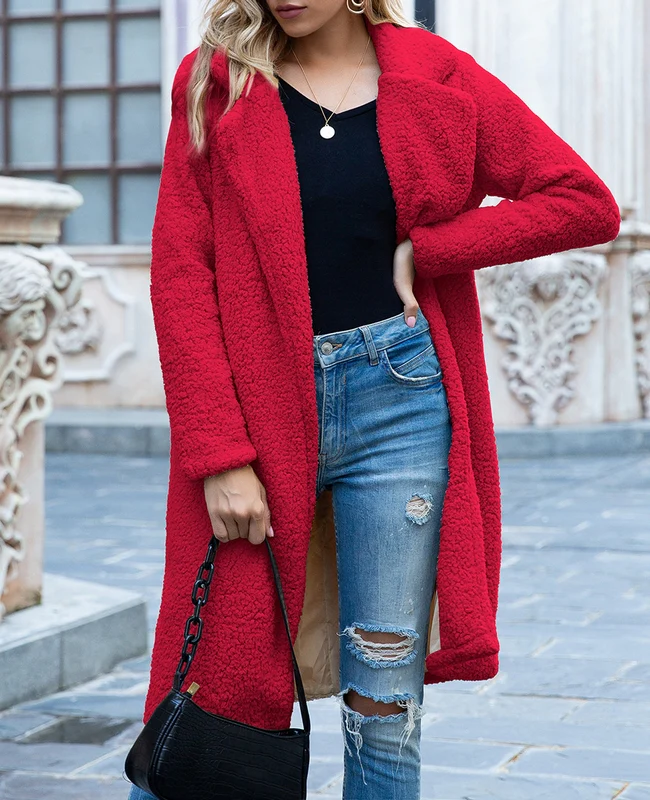 El modelo Liam es un abrigo largo con forro. Diseño abierto de borrego suave disponible en tres colores