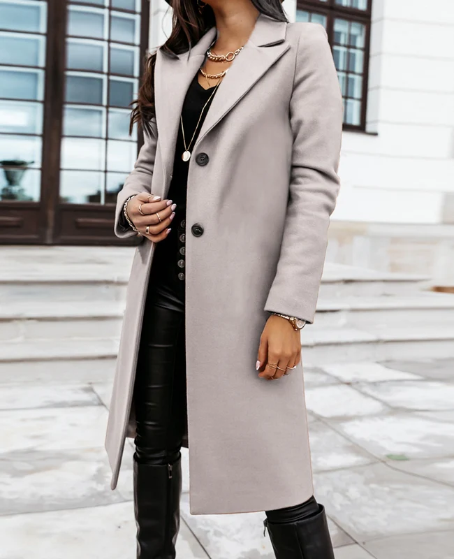 El modelo Miren es un abrigo de paño largo con botones. Está disponible en tres colores