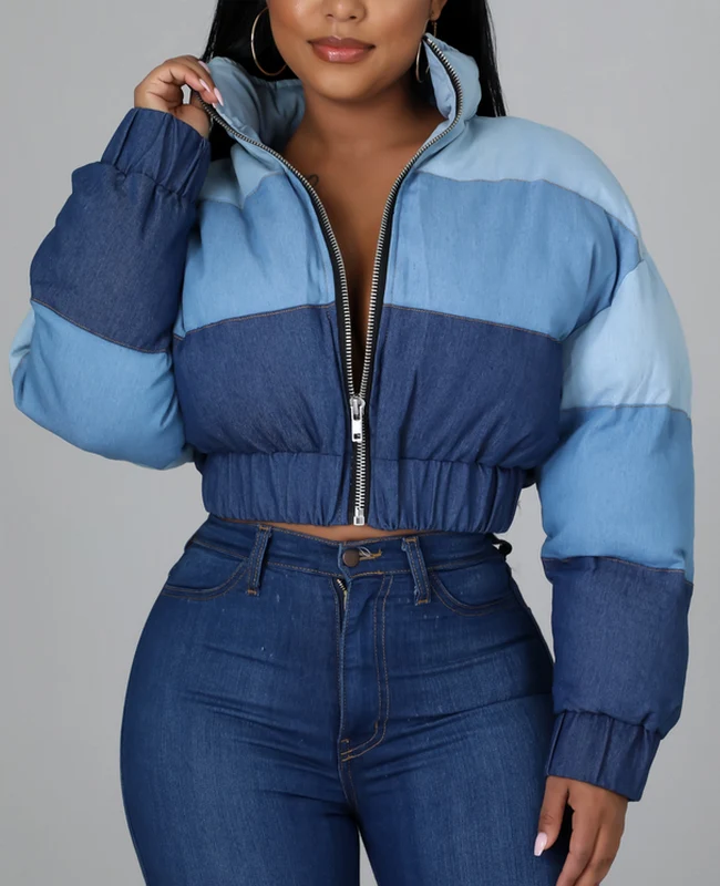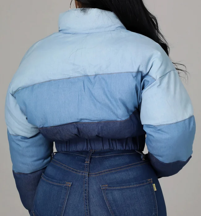 El modelo Saire es un abrigo de plumas. Diseño de estilo vaquero con cremallera y goma elástica