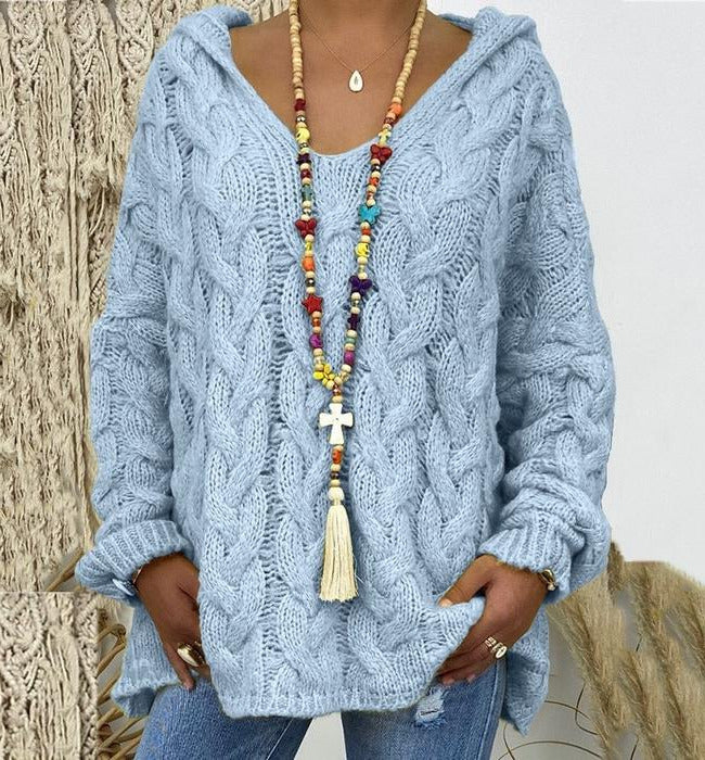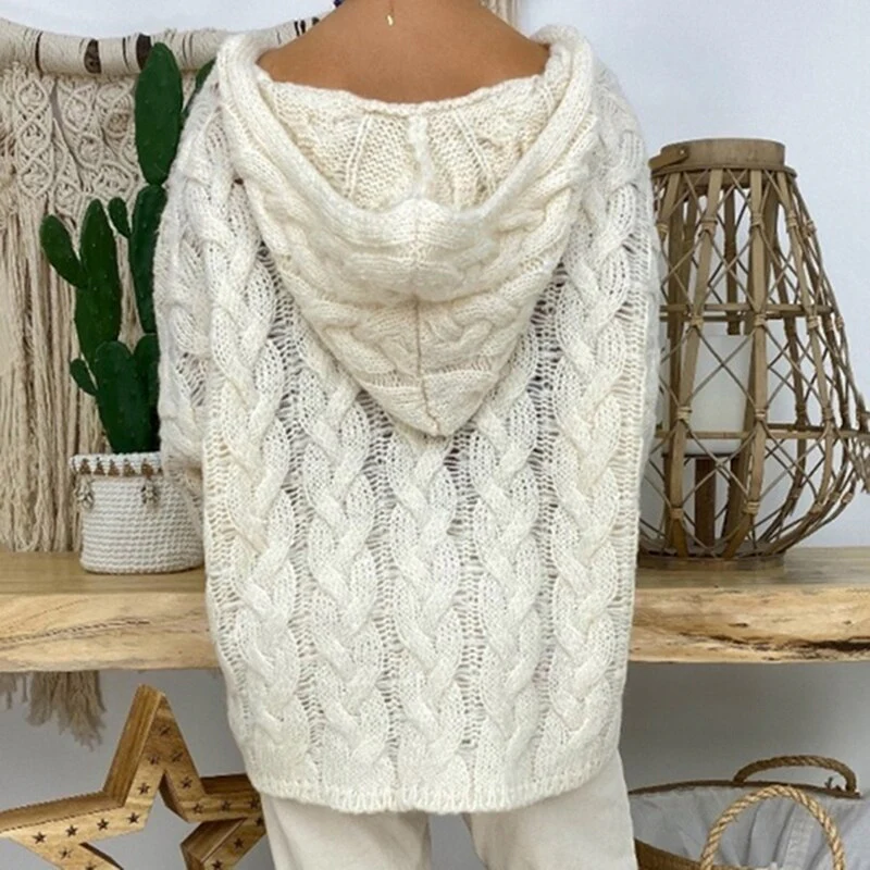 El modelo Barbara es un jersey de punto con estampado trenzado. Diseño de estilo ancho con capucha y manga elástica