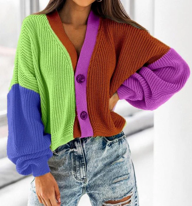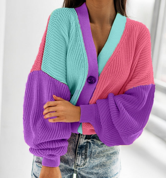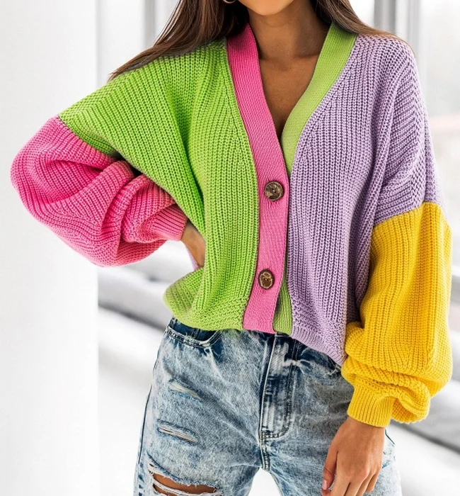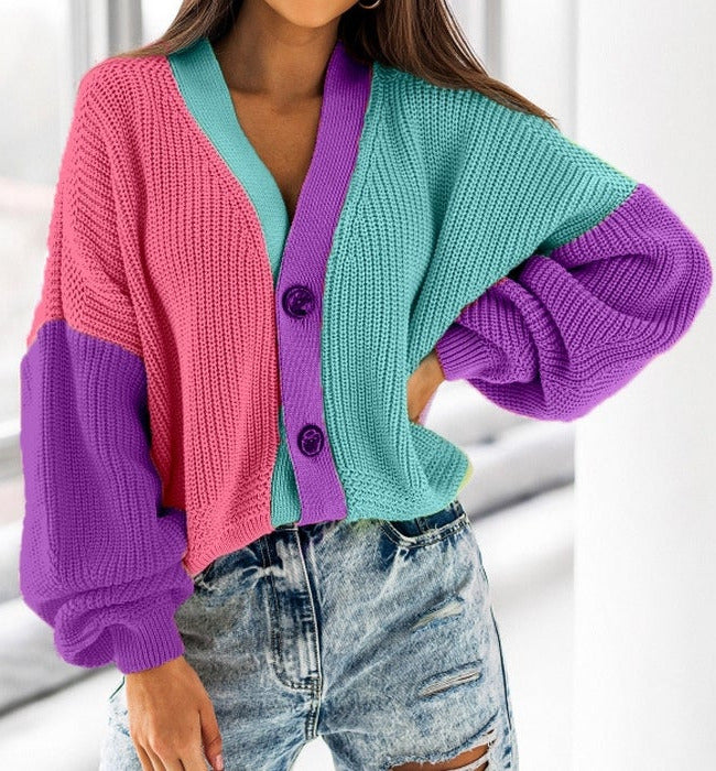 El modelo Colour es un jersey de manga caída y botones. Diseño de punto trenzado con cuello de pico