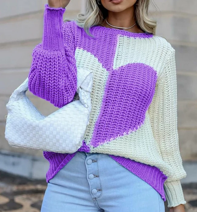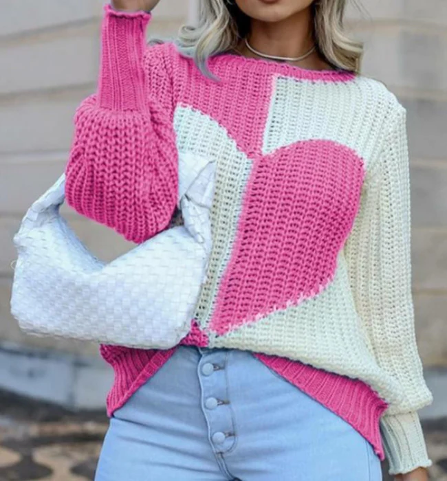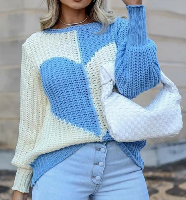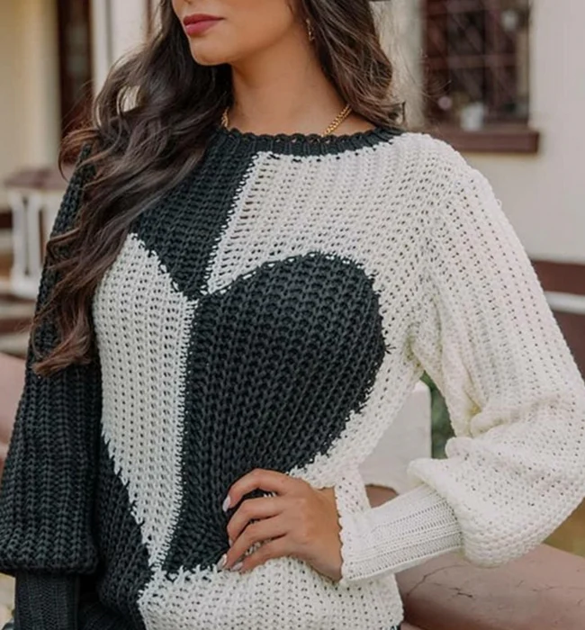 El modelo Vertia es un jersey de cuello redondo. Diseño de punto trenzado con corazón en dos colores