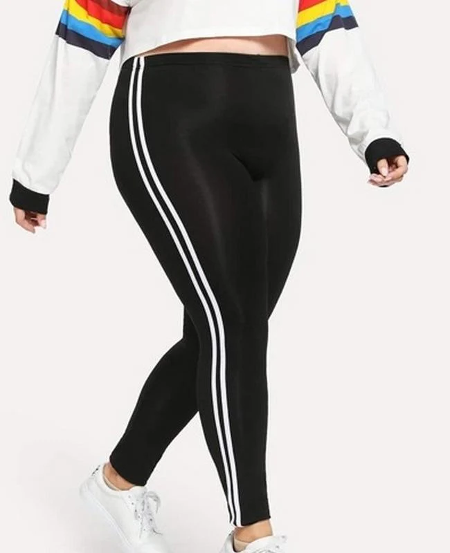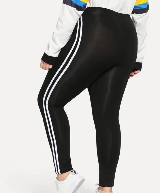 El modelo Arpe es un legging para talla grande negro brillante con rayas laterales blancas