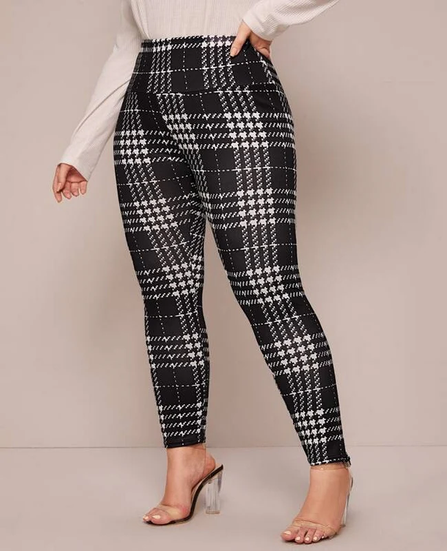 El modelo Cuad es un legging para talla grande con estampado de cuadros negro y blanco