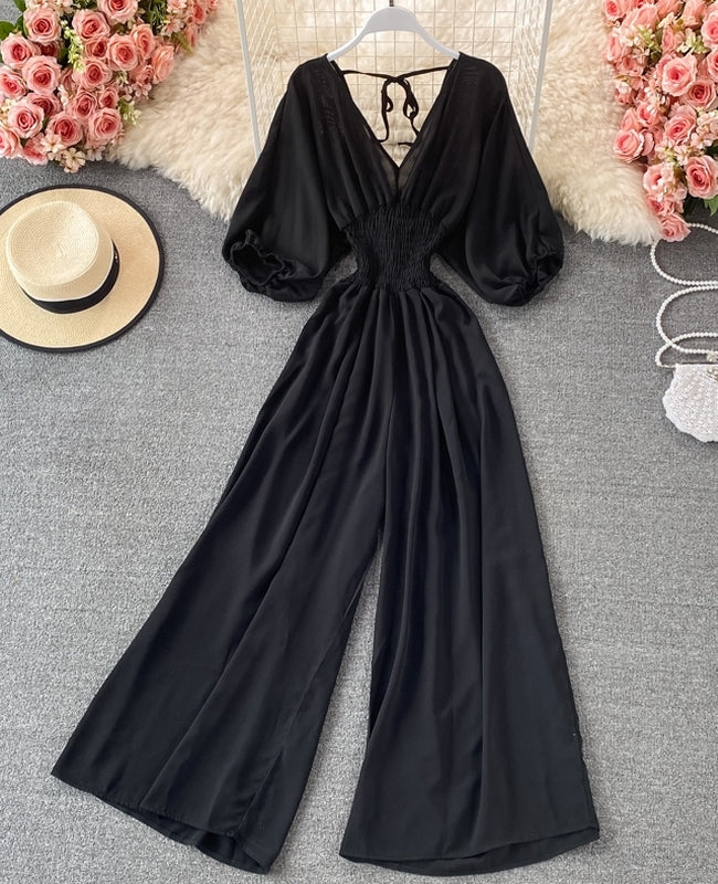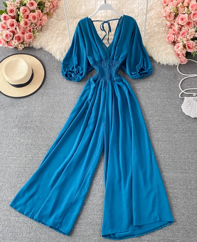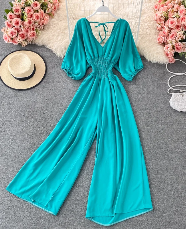 El modelo Alice es un mono largo de media manga. Diseño elástico con pantalón ancho y cuerda en espalda