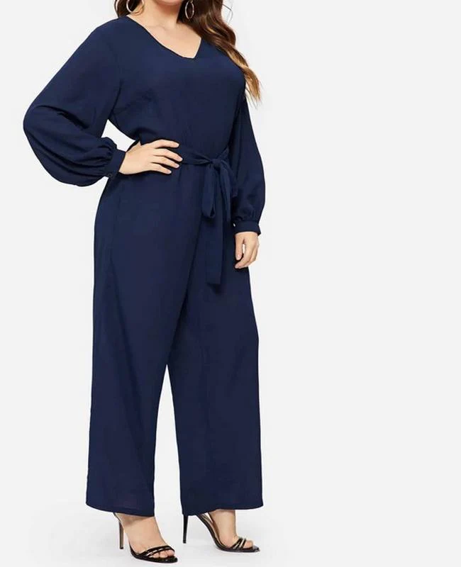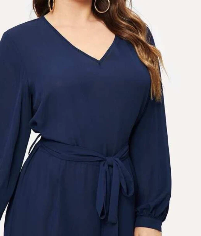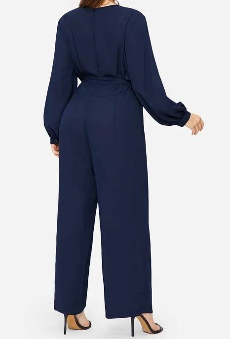 El modelo Allia es un mono para tallas grandes. Diseño elástico de manga larga con lazo en la cintura para ajustar