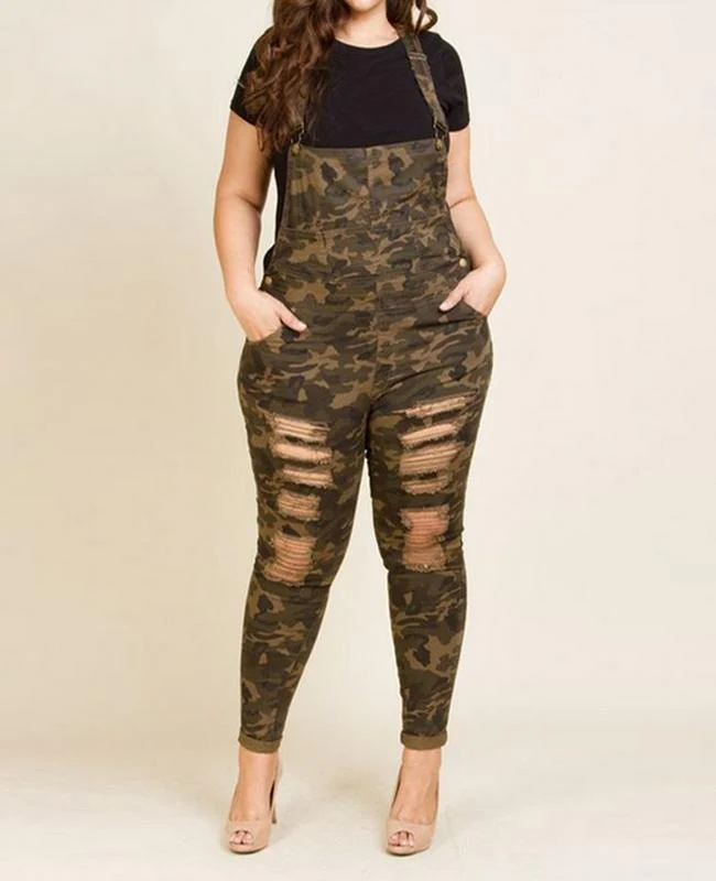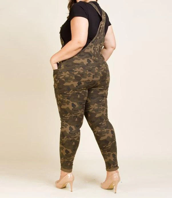 El modelo Army es un peto vaquero para tallas grandes. Diseño estampado militar con desgastado y botones laterales