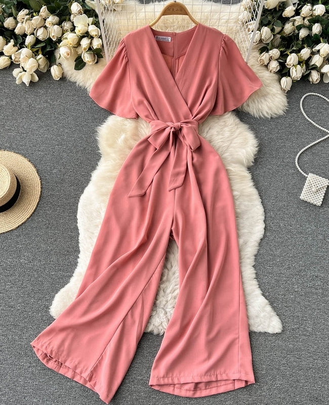 El modelo Brenda es un mono largo de manga corta. Diseño elástico con cremallera trasera y pantalón ancho