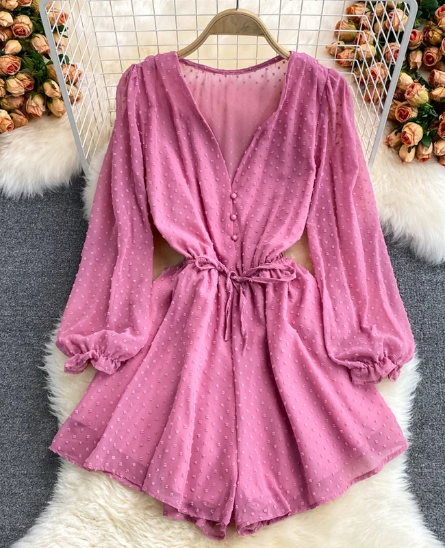 El modelo Catam es un mono corto de manga larga. Diseño en gasa con botones delanteros y cintura elástica con lazo para ajustar a medida