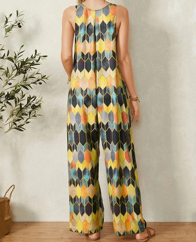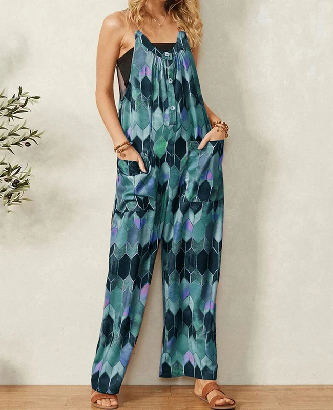 El modelo Ginna es un mono largo de tirantes. Diseño estampado con botones y bolsillos