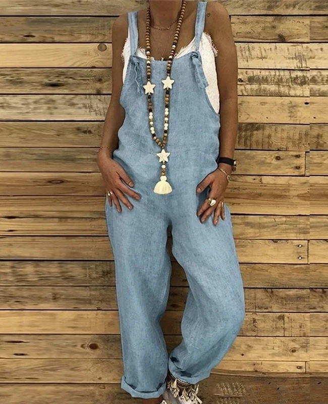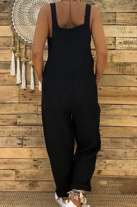 El modelo Linse es un mono peto de tirantes. Cómodo diseño de lino suave con bolsillos traseros