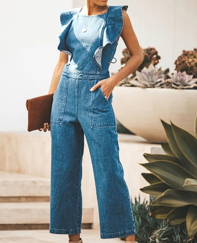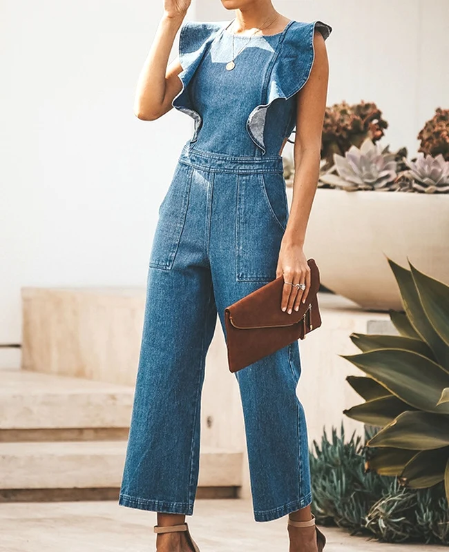 El modelo Loule es un mono vaquero de tirantes. Diseño con volantes y espalda descubierta