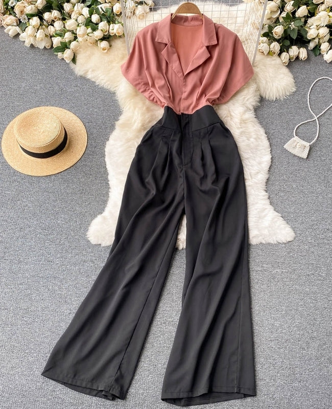 El modelo Nissia es un mono largo de manga corta y pantalón ancho. Diseño con botones y bolsillos.