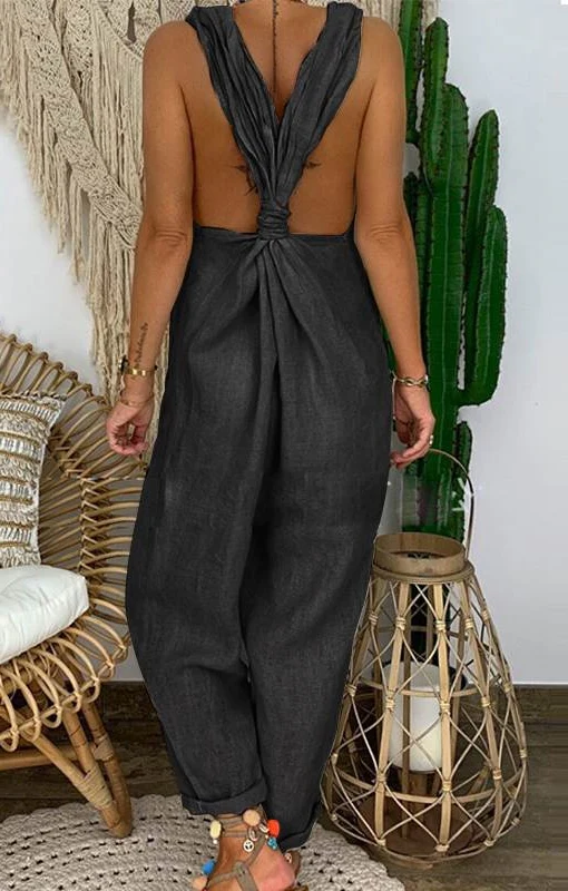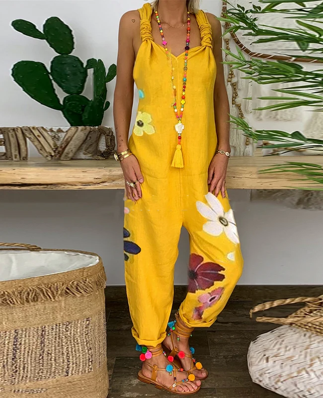 El modelo Panne es un mono largo de tirantes anchos. Diseño con espalda cruzada y estampado de flores