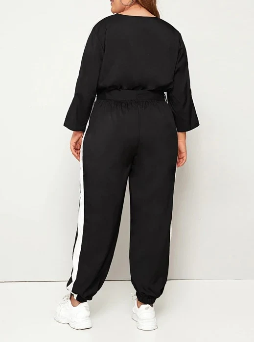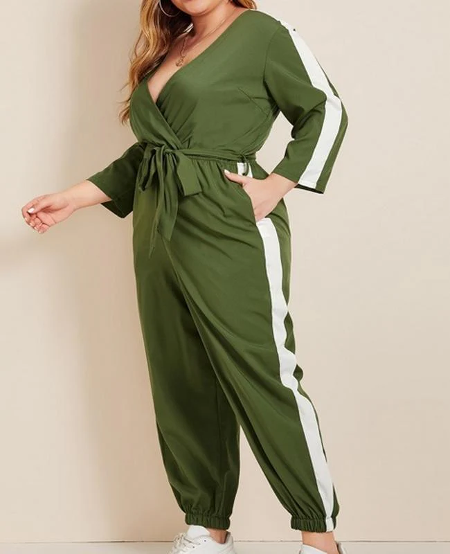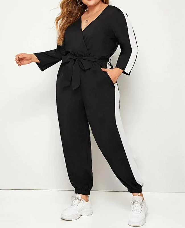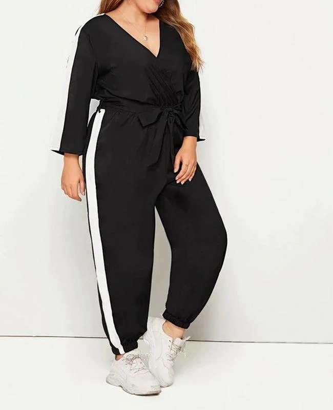 El modelo Sweet es un mono largo para tallas grandes. Diseño con lineas blancas laterales y lazo en la cintura para ajustar