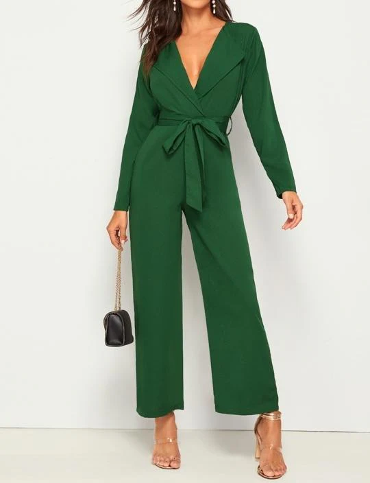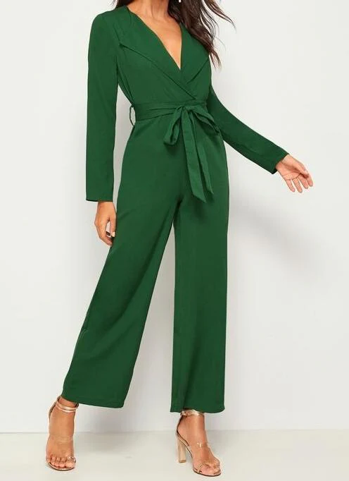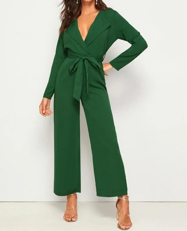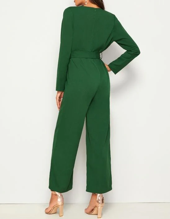El modelo Vert es un mono verde de manga larga y escote cruzado. Diseño con cremallera trasera y lazo en la cintura para ajustar