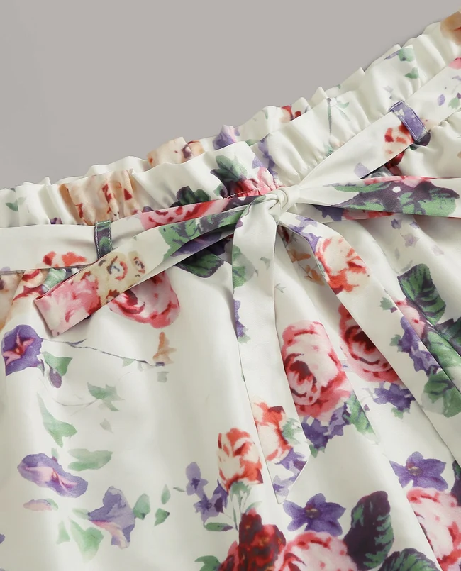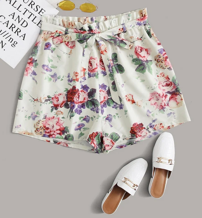 El modelo Melinda es un pantalón corto para tallas grandes de diseño estampado con goma elástica y lazo