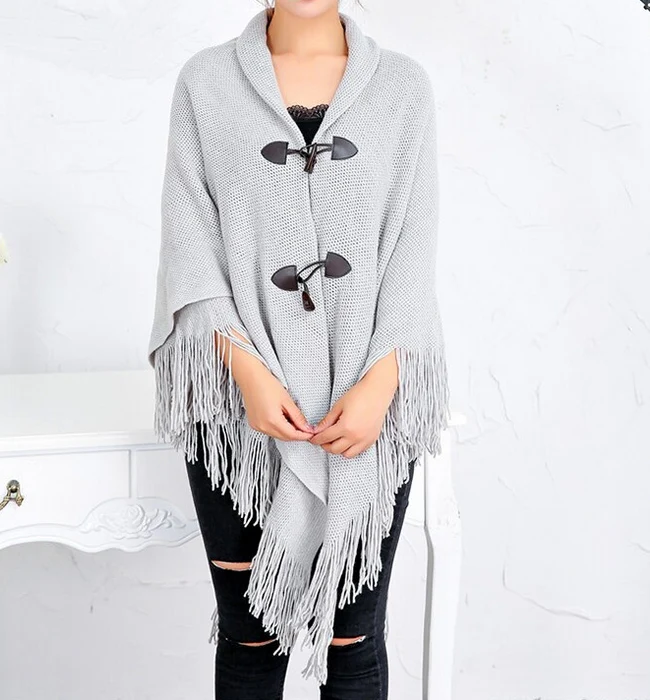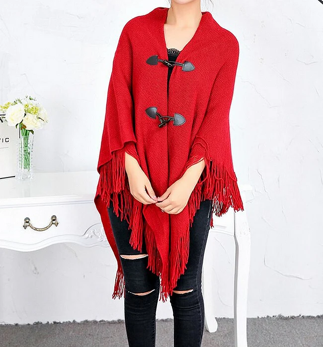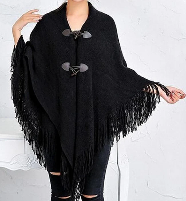 El modelo Tunez es un jersey estilo poncho. Diseño con broches y flecos