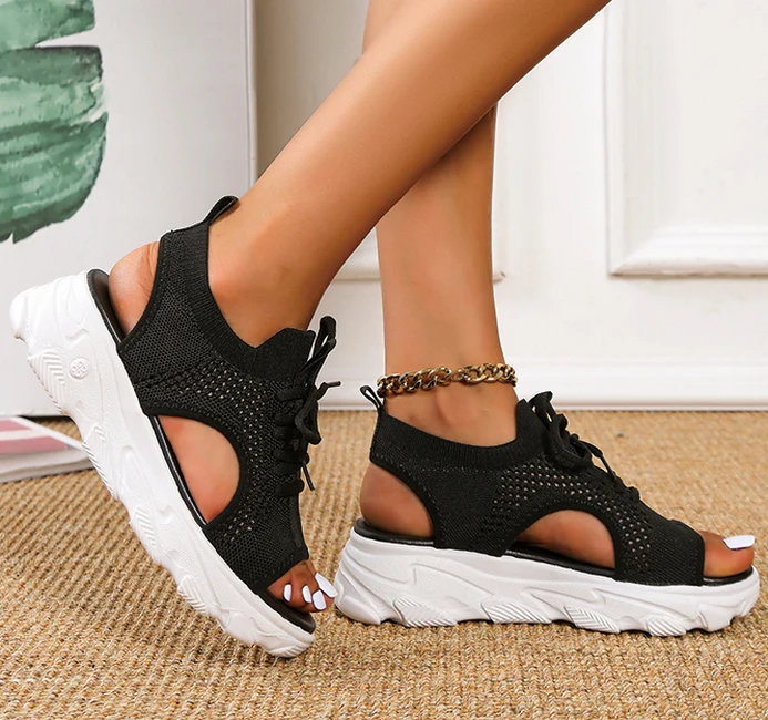 El modelo Ceres es una sandalia con plataforma. Diseño abierto y transpirable con cordones. Altura de 5 centímetros
