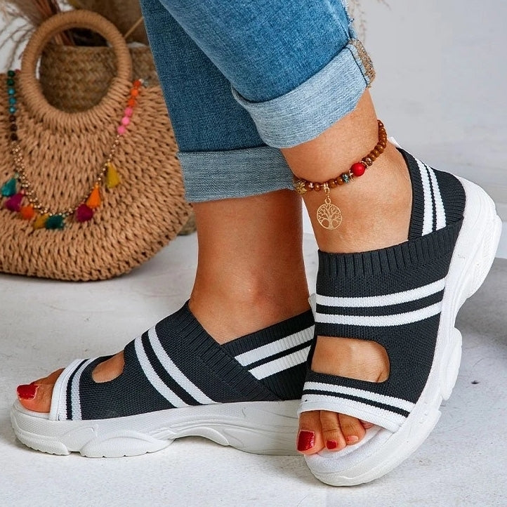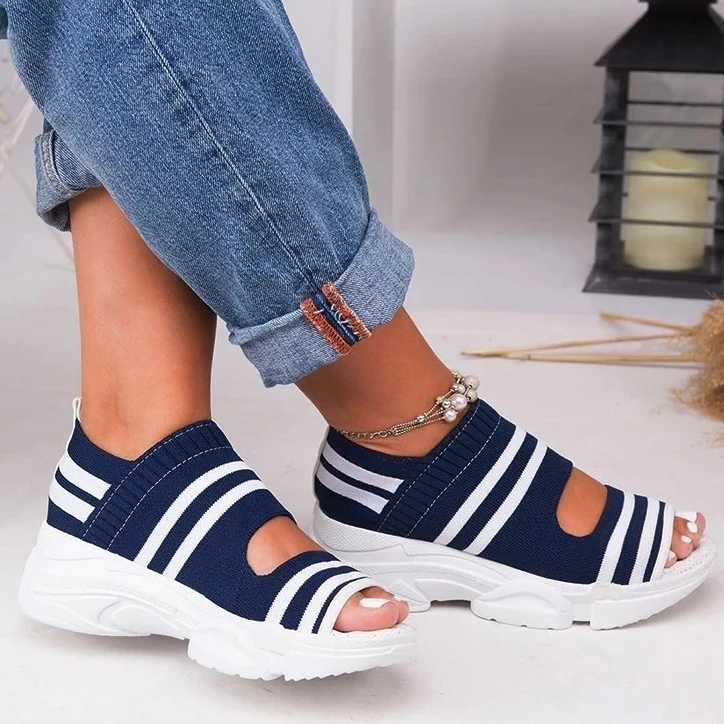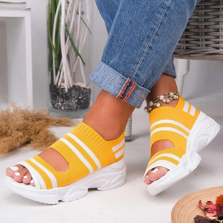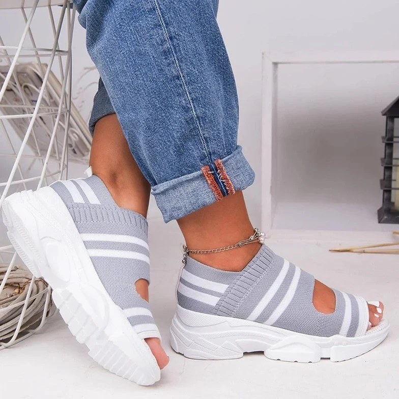 El modelo Ciara es una sandalia con plataforma. Diseño abierto, transpirable y elástico. Altura de 5 centímetros