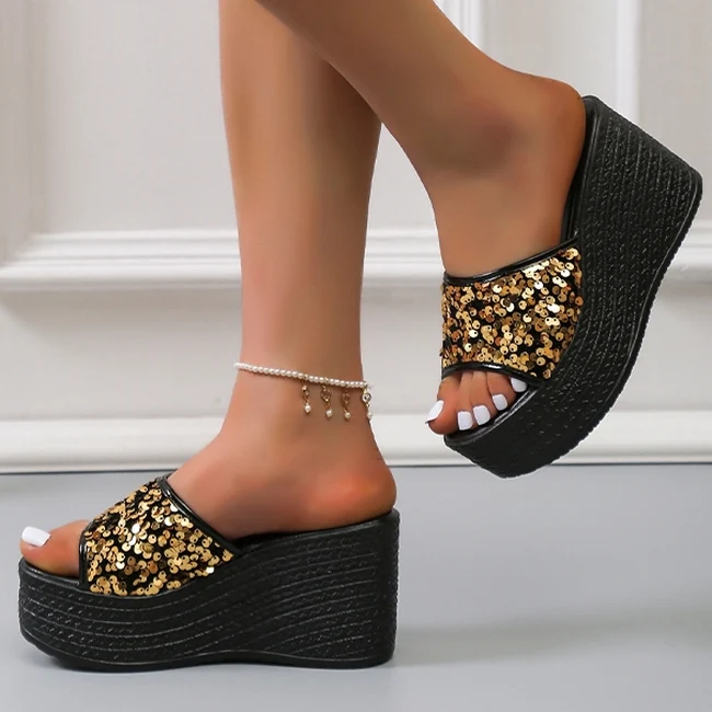 El modelo Cloe es una sandalia con plataforma de esparto y altura de 9 centímetros. Diseño abierto con brillante disponible en cuatro colores.