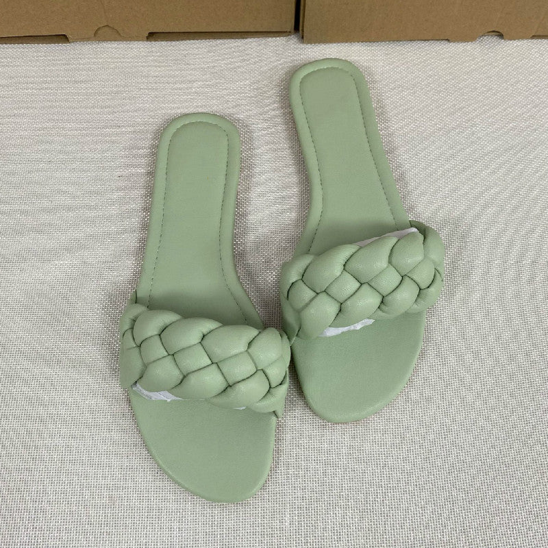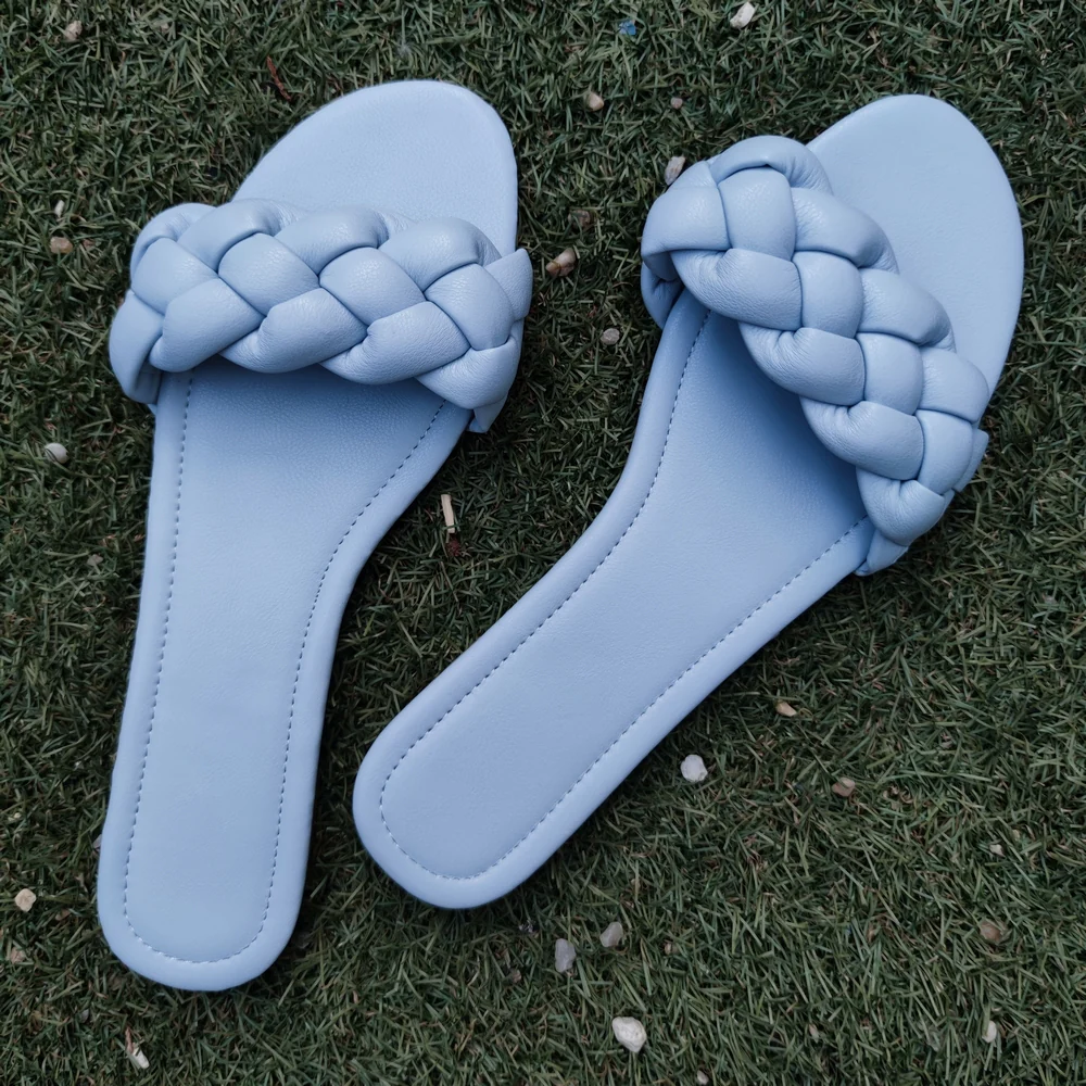El modelo Diana es una sandalia plana con medio centímetro de tacón. Diseño acolchado y trenzado disponible en 9 colores