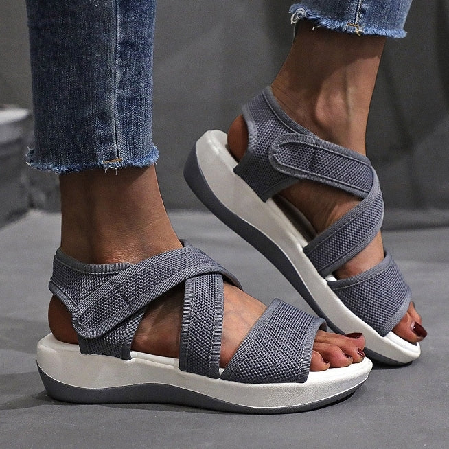 El modelo Medua es una sandalia con plataforma. Diseño abierto apto para el agua. Altura de 5 centímetros