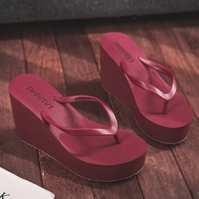El modelo Saona es una sandalia con plataforma de 10 centímetros. Diseño de goma con suela antideslizante.