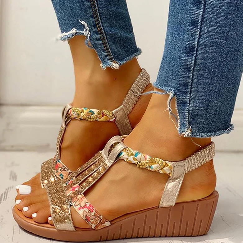 El modelo Viena es una sandalia con banda elástica en el talón. Diseño de tiras en empeine con decoración brillante. Tacón de goma antideslizante de 3’5cm .