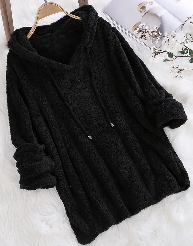 El modelo Baloo es una sudadera de pelo suave con capucha. Diseño con cuerda, disponible en cinco colores