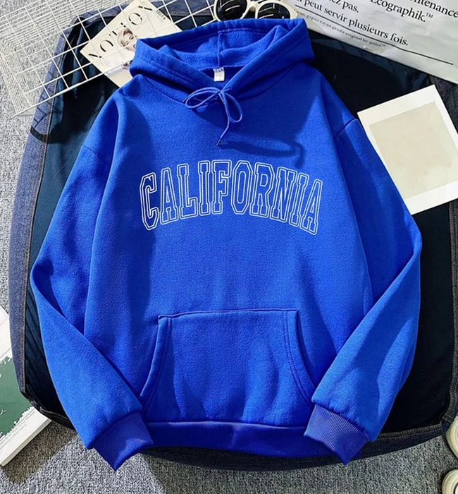 El modelo California es una sudadera básica con capucha y bolsillo. Disponible en cuatro colores