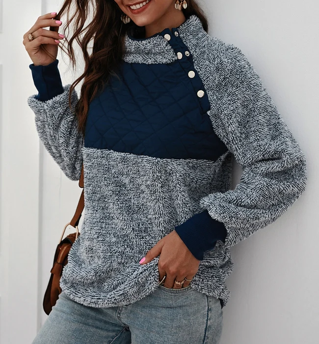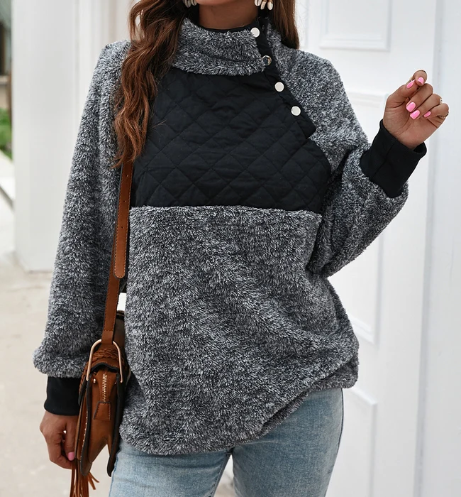 El modelo Idoya es una sudadera estilo jersey de pelo suave. Diseño con acolchado y botones laterales