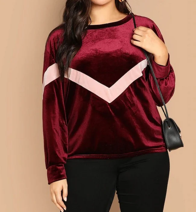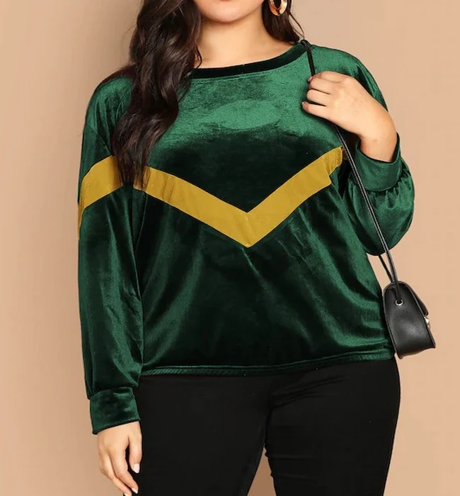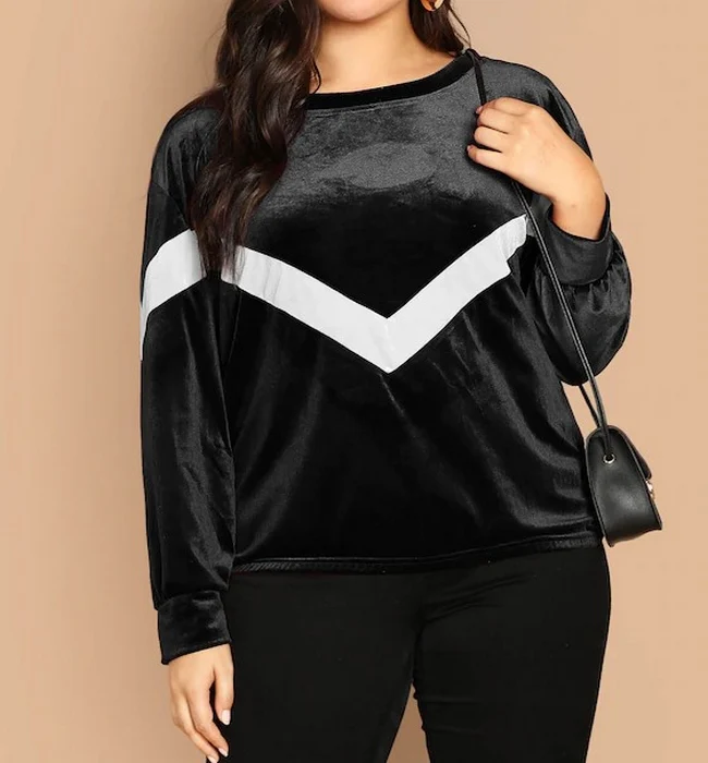 El modelo Nicca es una sudadera para talla grande de estilo terciopelo con banda de color