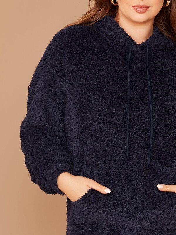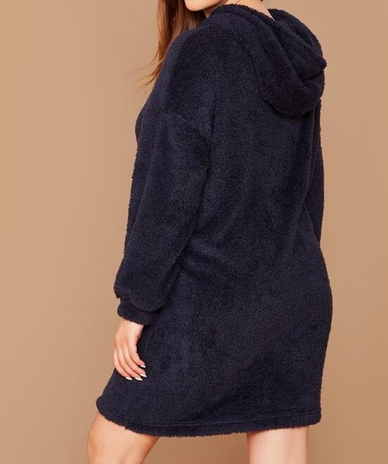 El modelo Yenne es una sudadera para talla grande de estilo peluche con diseño largo, capucha y bolsillo